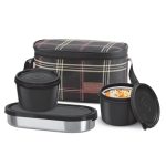 Milton Decker Lunch Box with Insulated Fabric Jacket, 2 Inner Stainless Steel Containers 450 ml Each & 1 Oval Stainless Steel 450 ml, Microwave Safe, Leak-Proof Tiffin for Office, Easy to Carry, Black is available on Amazon. Product Description:- Colour: Black; Material: Inner Steel; Outer Plastic; Package Content: 1 – ...