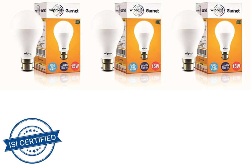 Wipro 15 W Basic Standard B22 LED Bulb(White, Pack of 3) is available on flipkart.